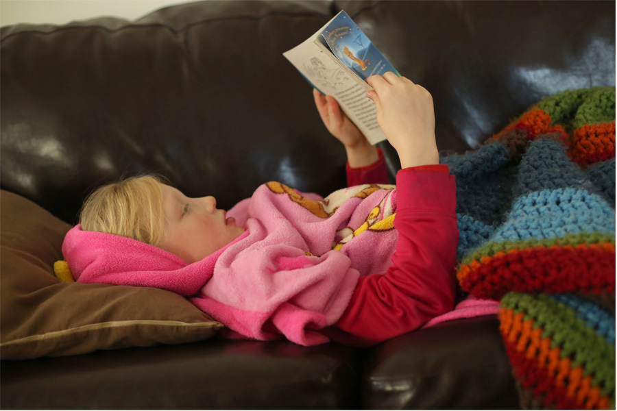 After lunch, all the littles needed to go down for a rest. All the big kids and Grandma Kathy did some quality silent reading.