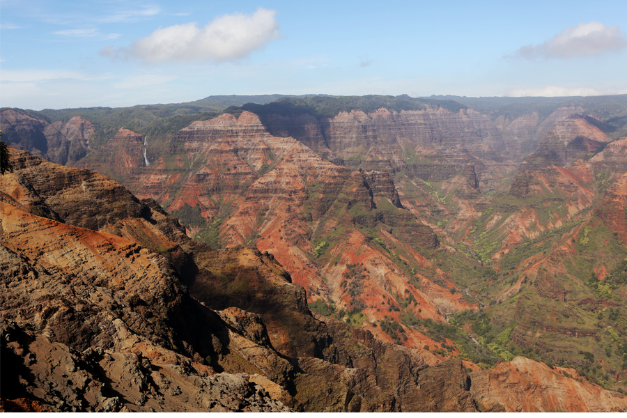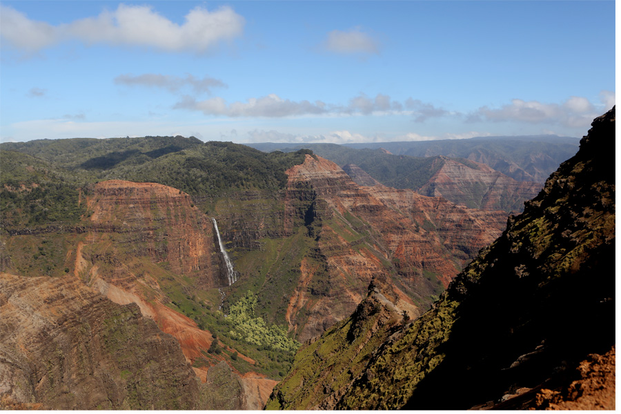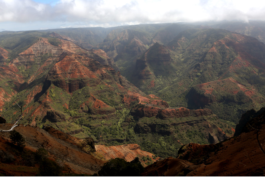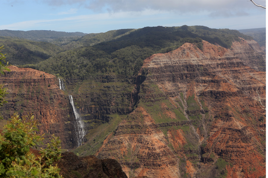 My dad loves canyons, and growing up, many of our family vacations included a visit to a canyon or gorge of some sort. We never visited the Grand Canyon, although my parents may have done that more recently. I can’t quite remember. Regardless, my dad would LOVE this canyon. It was incredible. I thought of him all day. What I was not prepared for before traveling to Kauai was the diversity of climate and geographical features on one tiny island: coastal plains, mountains, one of the rainiest places on earth, dry and dusty swaths of land where cacti actually grow, rocky beaches, sandy beaches. The day we drove up to this canyon was hot and sunny. I was not complaining because there was a windchill advisory back home, and the temperature in Northern Minnesota never rose above zero. I loved the waterfalls off in the distance in the canyon.