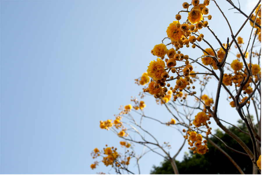 These flowers were called double buttercups, I believe. They were growing on a tree that had no leaves at all. I think the leaves come after the flowers, which signal a move from the dormant state into a new season for the tree. They were so cheerful.