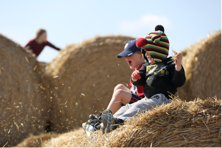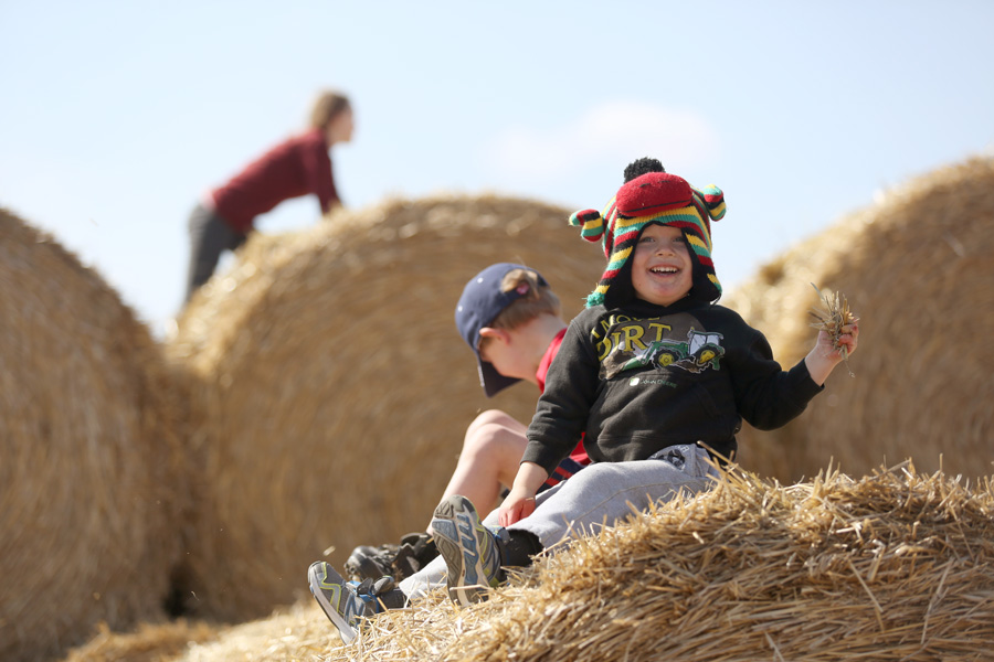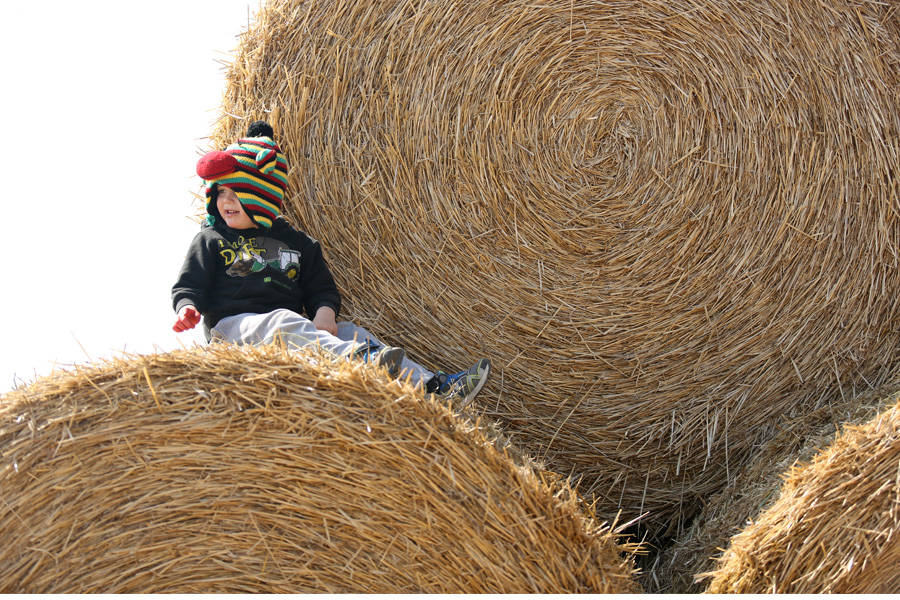 While scrambling around looking for hidden eggs, the big kids discovered the stacks of straw bales on the farm. The little kids discovered the big kids climbing and playing, and that started a lengthy time of leaping, sliding and scrambling. In the end everyone was covered in straw. Even Grandma Robbie’s house was littered with straw pieces. Of all the fun places to go and fun things to do on the farm, this was hands down the kidlets’ favorite.