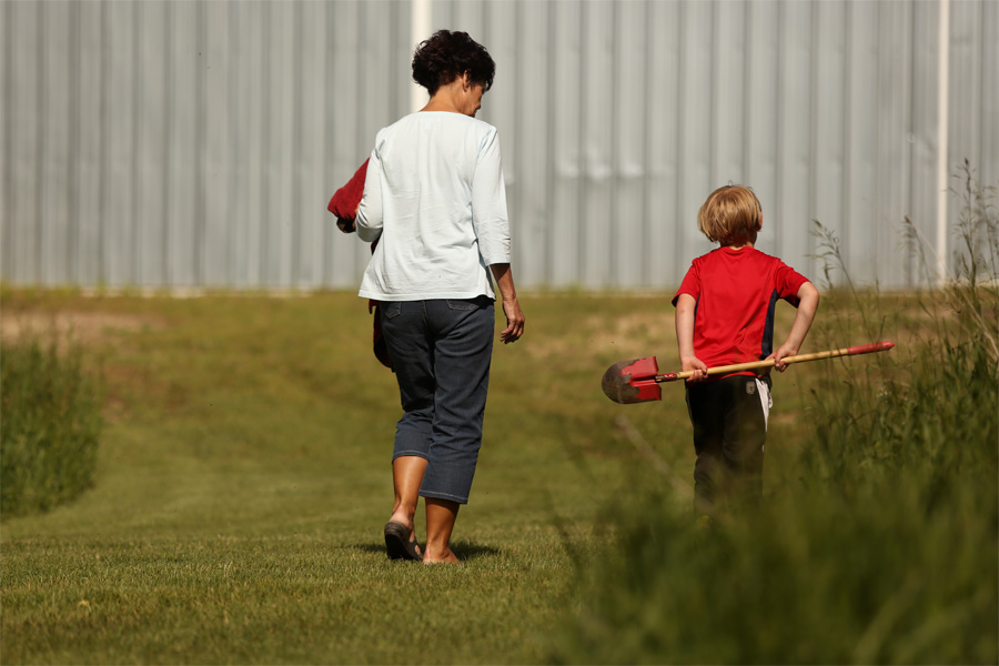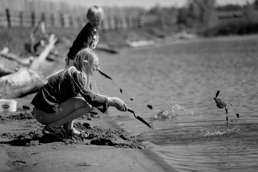 Mr. TOF was so excited to take a shovel down to the lake next to Grandma and Grandpa’s farm so that he could dig and dig and dig. He loves to dig, and the sand made for perfect, easy digging material. Plus, it’s just so fun to watch your hole fill up with water.