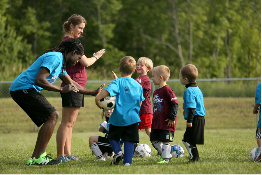 High fives for the coaches. He has decided he’d like to be on a soccer team all summer long.